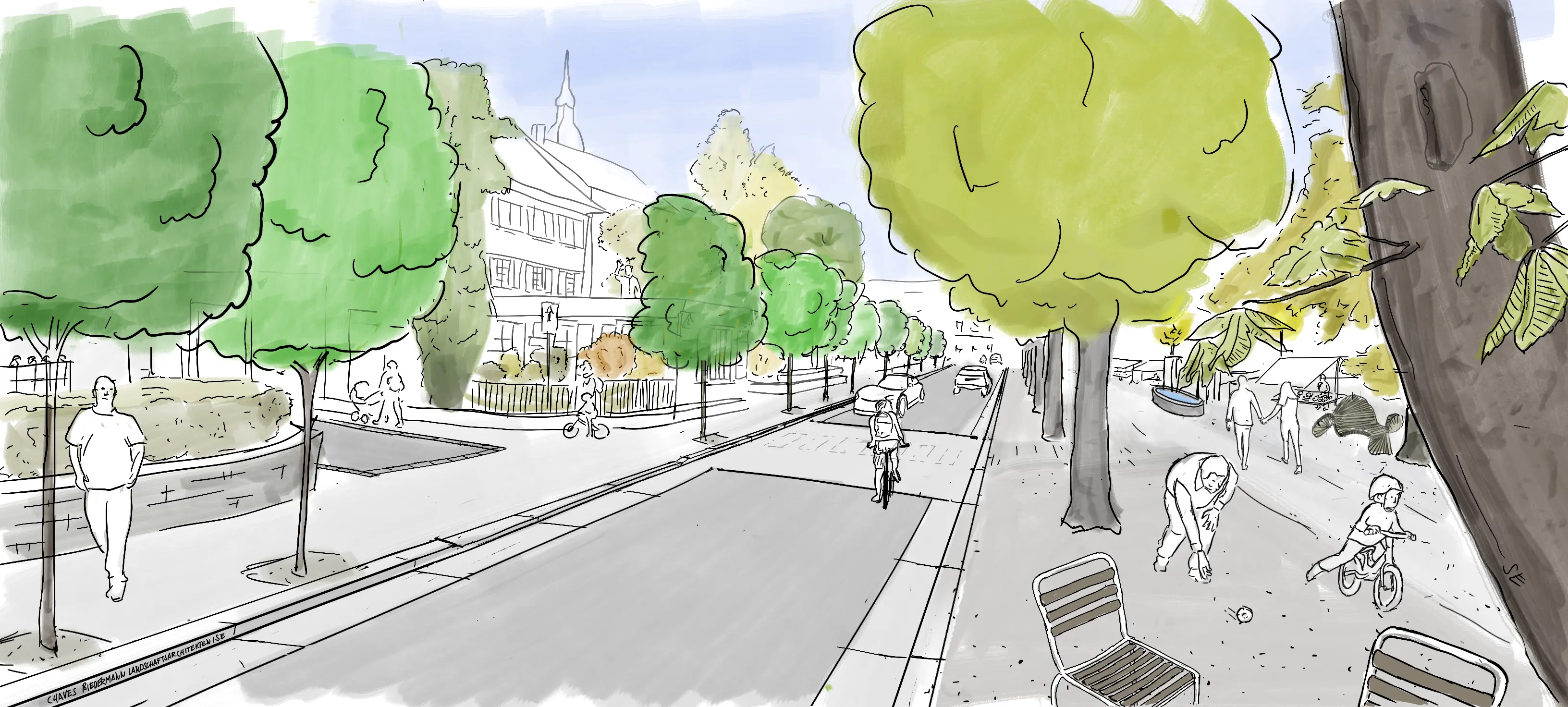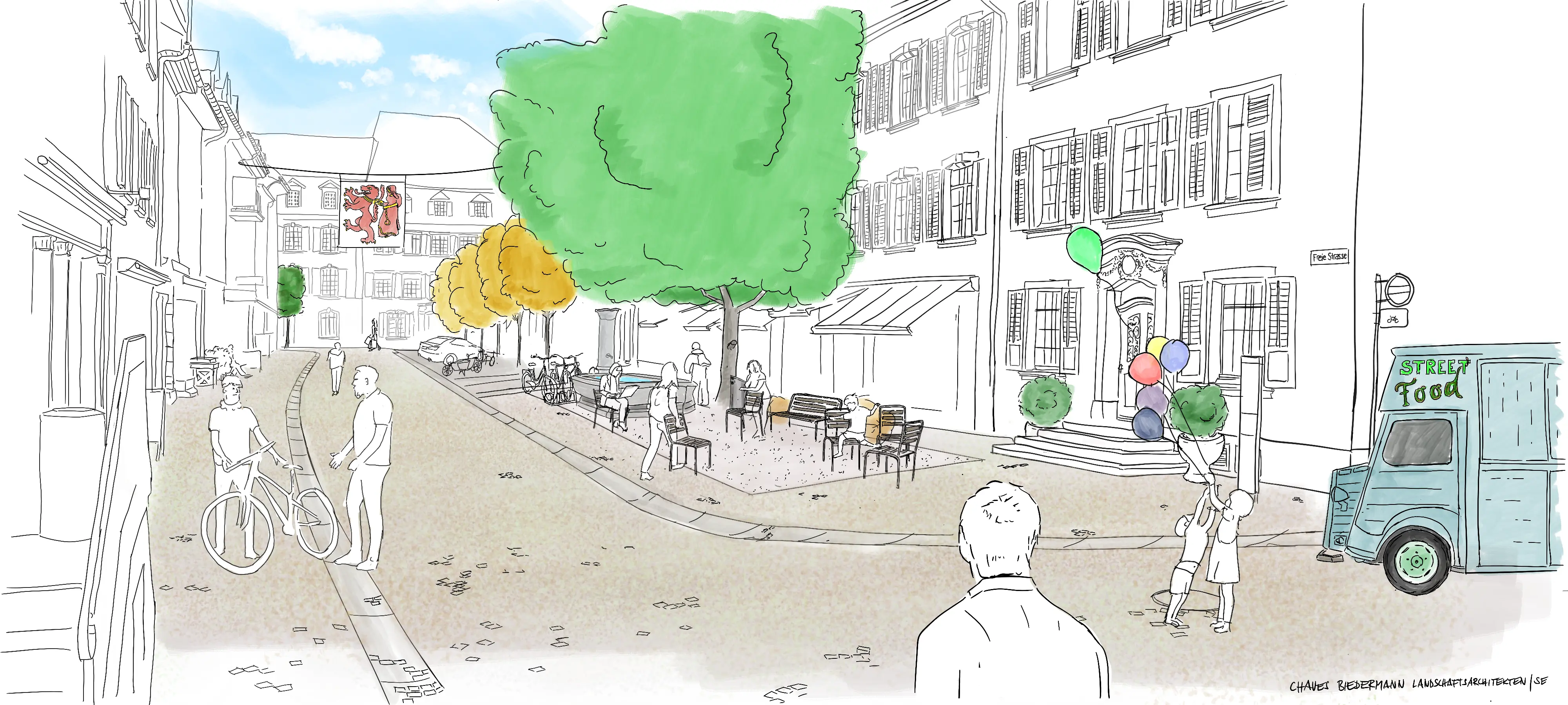 Verringerung Autoparkplätze zugunsten von Bäumen und Veloparkplätzen